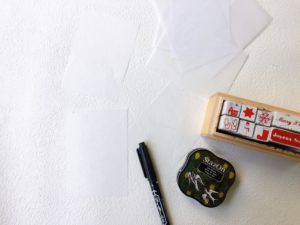 切ったトレーシングペーパーにスタンプや油性ペンで1~24までの数字とイラストや文字を書き込みます。