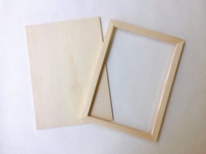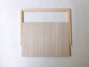 まずは、フレームの裏側にピッタリ合う中敷き?底上げ?の板を切ります。