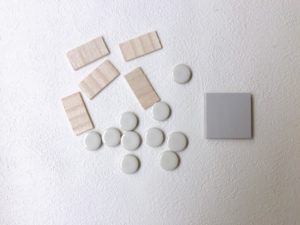 小さい丸いタイルは高さが足りないので、端材で高さを足します。