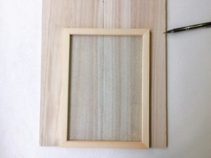 まず、木製フレームの裏についているパーツは全部取り除きます。