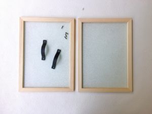 木製フレームに取っ手を付けます。