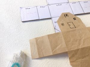 屋根部分を重ねて、マスキングテープでとめます。