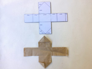 家の形になるように太い方を真ん中を中心にして三角に折ります。