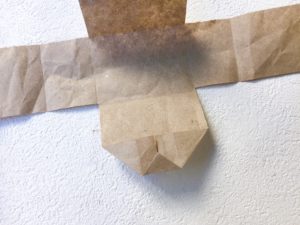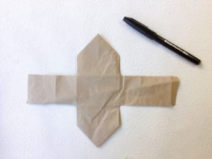 家の形になるように太い方を真ん中を中心にして三角に折ります。