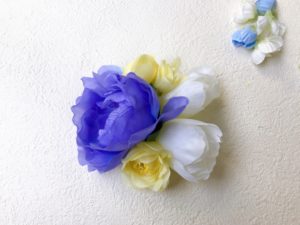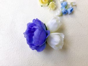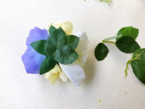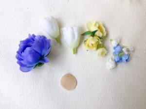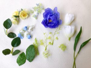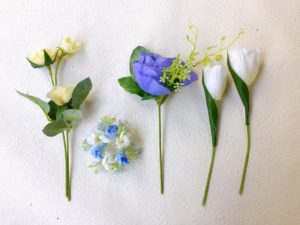 2、フェイクフラワーをぶちぶちと引き抜き、材料を準備します。